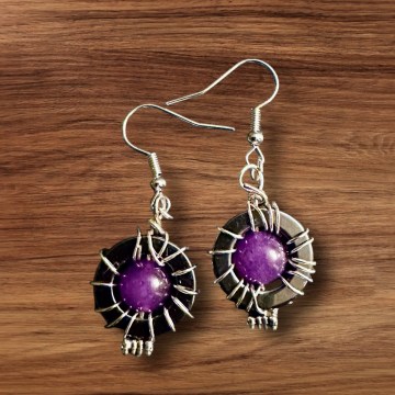 Hematite ring with Amethyst bead